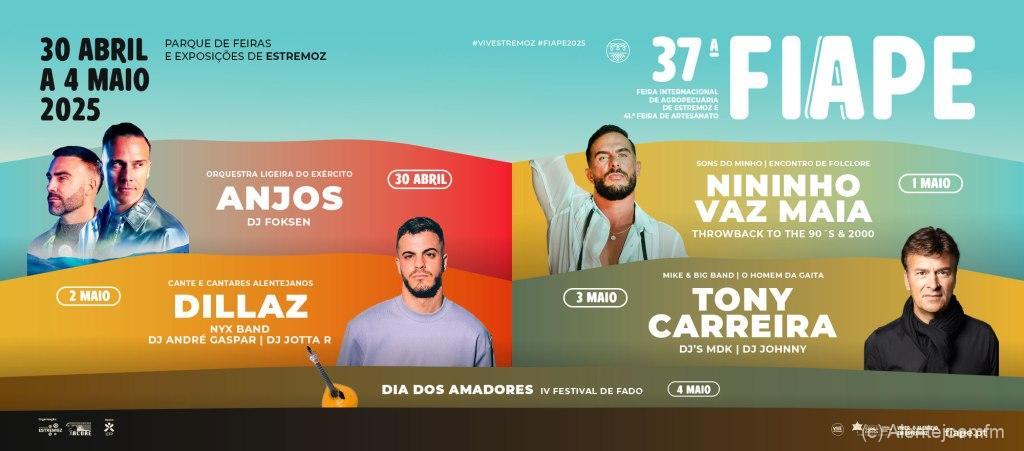 Ainda que considere que a componente musical não seja “a essência” do evento, o autarca considera-a “muito importante”. Desta feita, e à semelhança dos anos anteriores, o cartaz de espetáculos, com concertos para todos os tipos de públicos, inclui “figuras consagradas do panorama musical nacional e internacional”. Ao palco da FIAPE sobre os Anjos, no dia 30 de abril, Nininho Vaz Maia, a 1 de maio, Dillaz, no dia 2, e Tony Carreira, no dia 3.